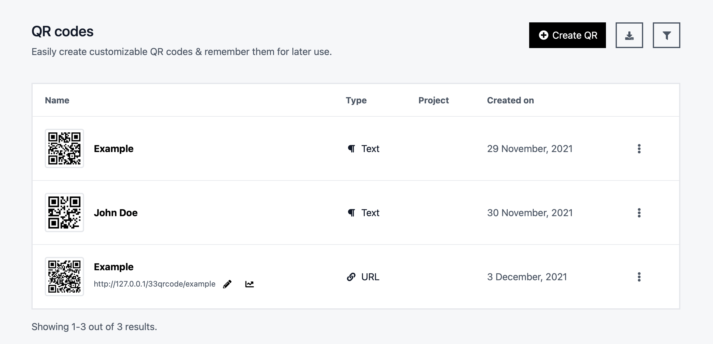 We do not store any data of your created QR codes, except the ones that you save in your account willingly.